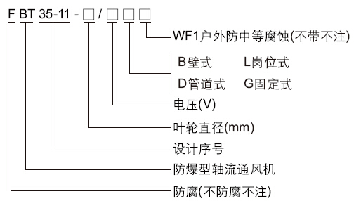 ● 通風機由防爆電動機、葉輪、風筒、防護罩等組成;